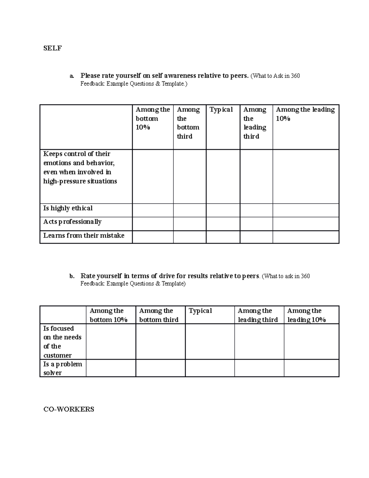 If you are not able to respond to an item, select not applicable or leave it blank and go on to the next item. Then duplicate the online form below and customize it as you need on 123 form builder. We, at the team approach, provide this template to clients using 20/20insight as a 360 feedback tool. You can also perform one to one feedback by alternatively you can download other free employee self evaluation template, sample employee evaluation template, employee evaluation.