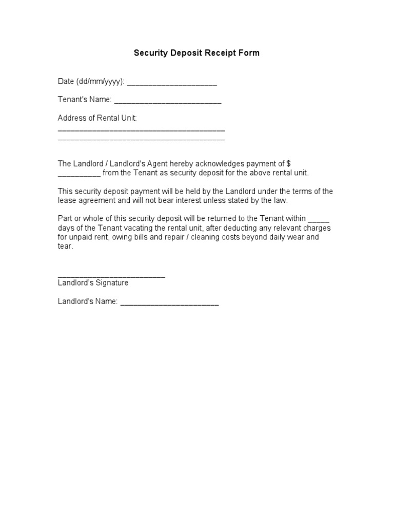 Security Deposit Receipt Template Addictionary from www.addictionary.org