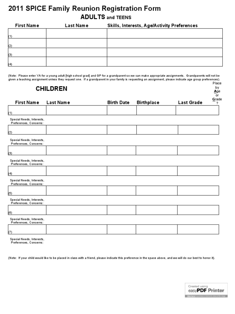 Proof of your language abilities according to the standards of the association of registration for marriage issued by the german registry office (standesamt). A family reunion registration form is a form that collects information on who will attend the family reunion event. Whether planning a reunion for 10, 50 or over 100 relatives, myevent.com can provide you with numerous • custom forms build any type of form to collect information from your family members such as registration forms, menus, reservation forms. Ask for other family members to help with planning activities and choosing the time and place.