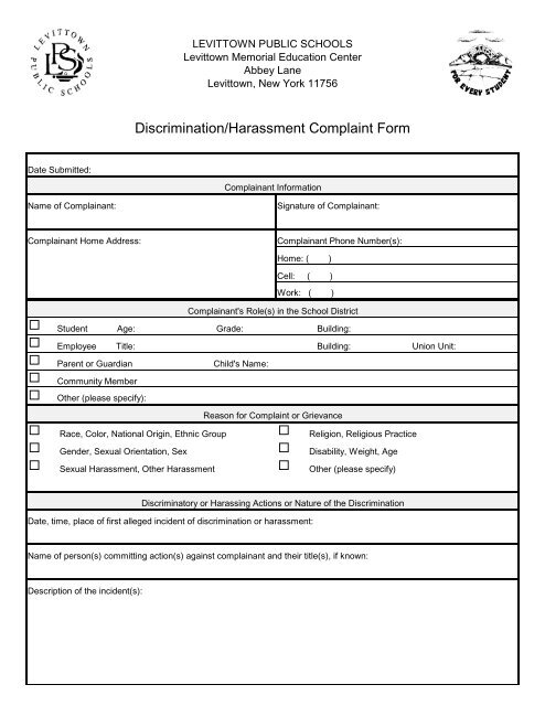 This form will assist districts in investigating reported incidents of such behavior. The investigator will document all interviews, collect evidence and maintain an investigation file. This can take many forms, like unwelcome sexual or romantic advances, sexual blackmail, offensive touching.