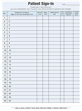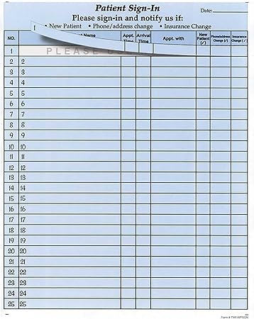 Still using the physical sign in sheets to sign in your patients? Doctor sign in sheet is considered as vital part of the treatment procedure and thus all hospitals, as well as clinics, maintain patient records in sign in sheets. 250 sheets accommodates 6,250 patient visits.