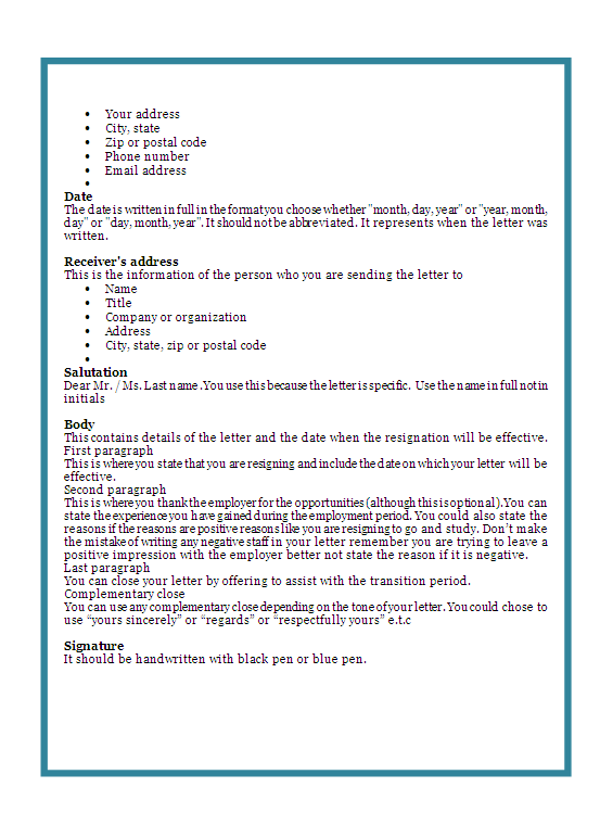 Authorization letters are used in different spheres for different purposes, for examples; Dear sir, i, (your name ), after careful thought and consideration and with deep regret would like to inform you that due to some unavoidable family reasons i will not be able to render my services to this esteemed organization. Leave a good impression and lay the foundation for future opportunities with a former when it's time to move on from your current job, inform your supervisors by composing a professional resignation letter.