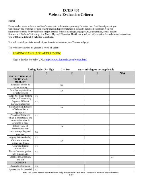 Background. A website evaluation form can help you properly assess the information that you have provided in your blog or website. 5 website evaluation form page 2 of 4 1 2 3 4 5 strongly.